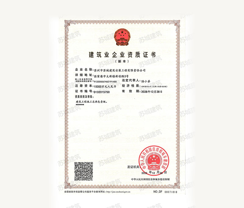蘇州市蘇城建筑安裝工程有限責任公司,擁有主項建筑工程施工總承包一級資質(zhì),增項市政公用工程施工總承包二級資質(zhì)和建筑裝修